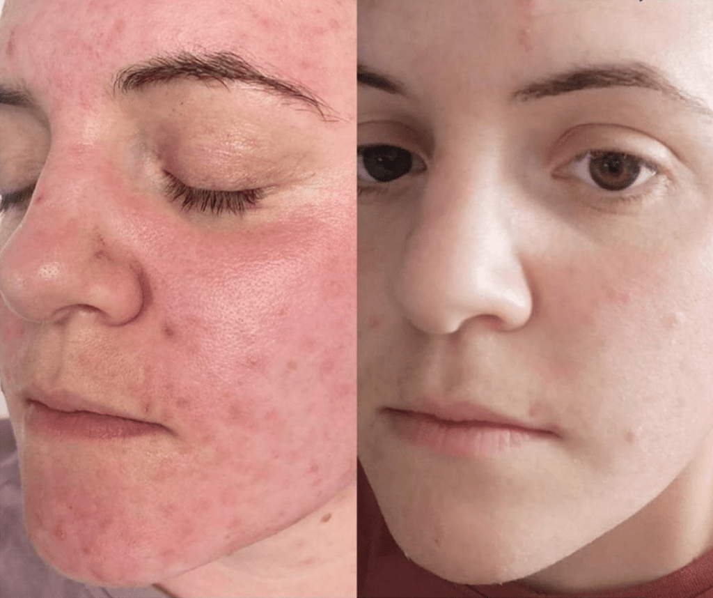 Dit hoort bij het proces en is een teken dat de huid hard aan het werk is.